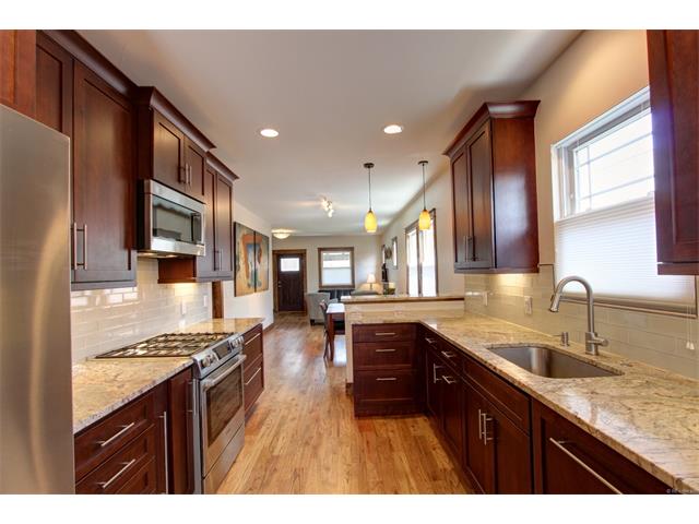 This custom remodel and mud room addition was a total interior remodel of a Wash Park Bungalow. The home was rearranged to be more open and comfortable. All of the mechanical systems were replaced and a new mud room added on to the back of the house for easier access to the garage and basement. The home features a custom kitchen, stain grade trim and doors throughout, and finish in place oak floors.